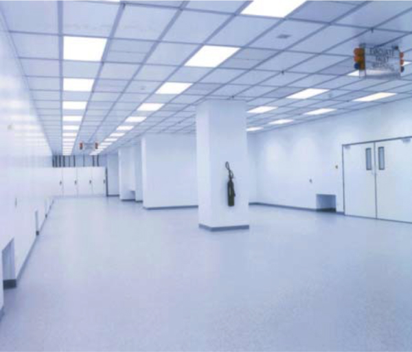 Cleanroom raised access floor, partitions, flush ceiling grid with 100% FFUs and ULPA Filters.