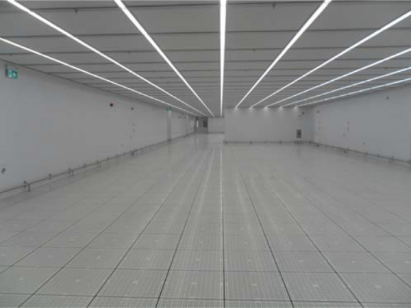 The system consisted of an inverted roof suspended directly from the concrete soffit, with a gravity draining system collecting potential water leaks and at the same time providing support for the Data Hall ceiling and all overhead M&E services within the Data Hall.